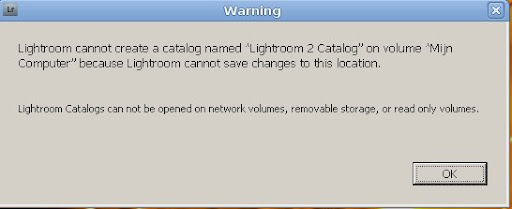 Maar dan geeft lightroom aan dat de catalogus niet geopent kan worden. Terwijl het gewoon op mijn intere hardeschijf staat.