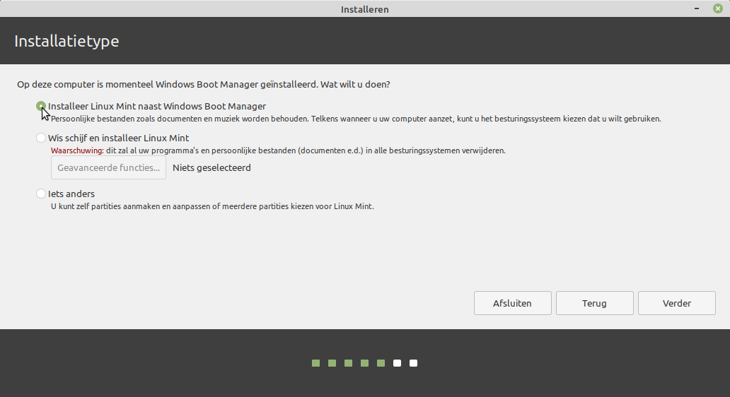 En ja lette echt niet op ,doe dualboot met ElementaryOS met werkwijze Element naast Win trek aan het schijfje 40Gb installatie loppt alles gelukt.