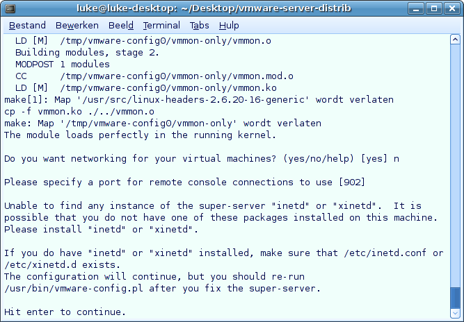 Nu nog guest additions etc instaleren. ik houd jullie op de hoogte!