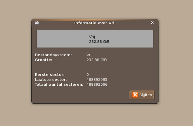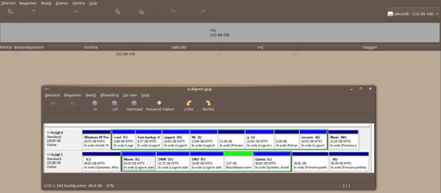 Op onderstaande screendump zie je bovenaan de partitie zoals aangegeven door Gparted.