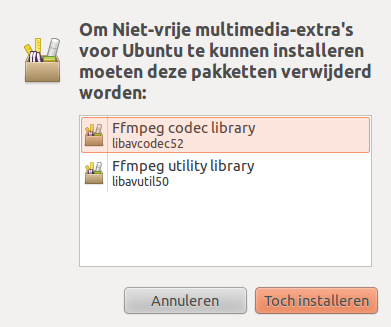 Heb gisteren de final release van 10.10 geïnstalleerd op m'n testpc en bij de installatie aangevinkt om de updates en de niet vrije programmas mee te installeren. Bij het aanvinken van "niet vrije multimedia extras voor ubuntu" kreeg ik deze melding :