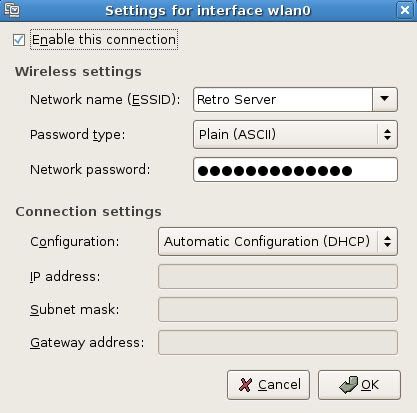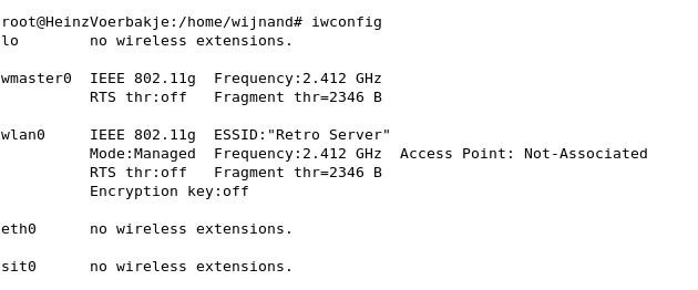 Bij de network setting onder system krijg ik dit scherm (mijn router essid is Retro Server, daarom staat dat er bij, zelf ingevuld).