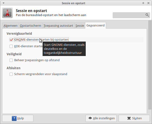 Er worden Gnome "dingen" of KDE "dingen" standaard opgestart, zodat een programma dat deze dingen gebruikt sneller opgestart kan worden.