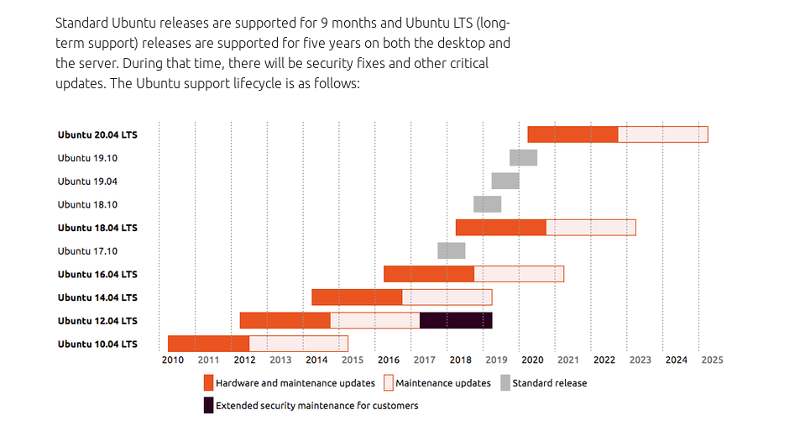 Niet echt vijf jaar, maar drie jaar volledige ondersteuning !.De vijf-jaars-ondersteuning voor LTS is enigszins vertekend. De volledige periode van vijf jaar ondersteuning met veiligheids-updates, geldt namelijk alleen voor de programmatuur die afkomstig is van het moederbedrijf van Ubuntu (Canonical) zelf.