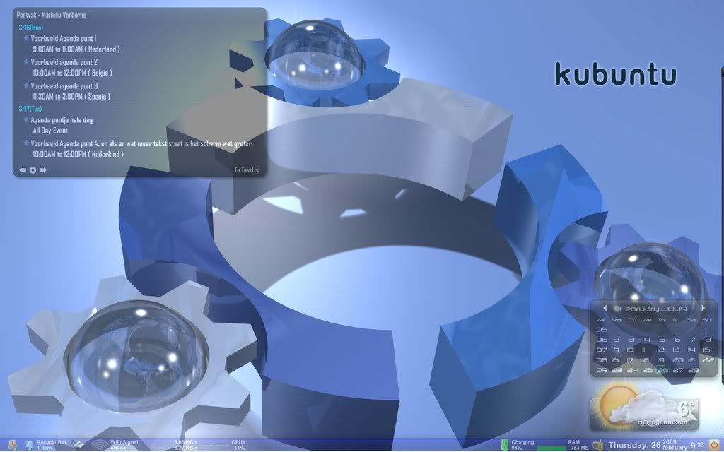 Die wallpapers, die zijn van Interfacelift.com, niet? Overigens, wacht maar tot je KDE 4.2 probeert. Dan kun je pas lekker pimpen :evil: