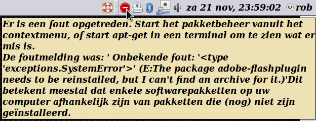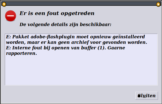Synaptic pakketbeheer sluit zich weer na wegklikken foutmelding, updaten gaat gedeeltelijk