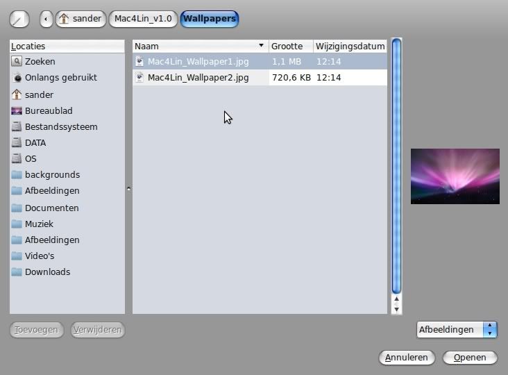 Kies toevoegen en ga naar je home map/Mac4Lin_V1.0/Wallpapers/