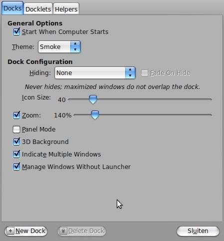 Dan kies je ervoor dat ie opstart met de computer. Thema mag je zelf kiezen maar 'Smoke' heeft het meeste van OSX weg.