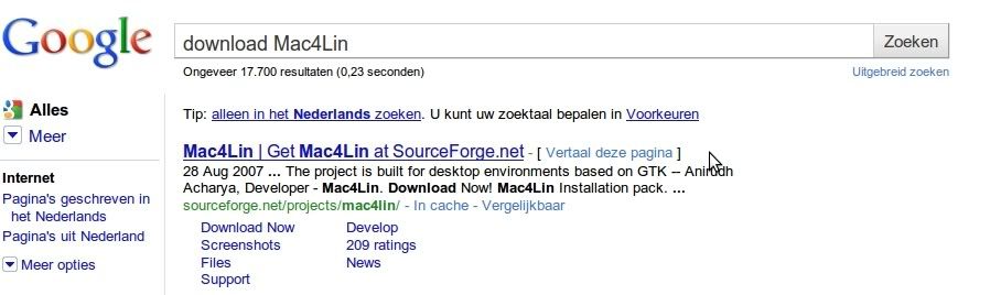 Om te beginnen open je je browser en google je naar "Download Mac4Lin"