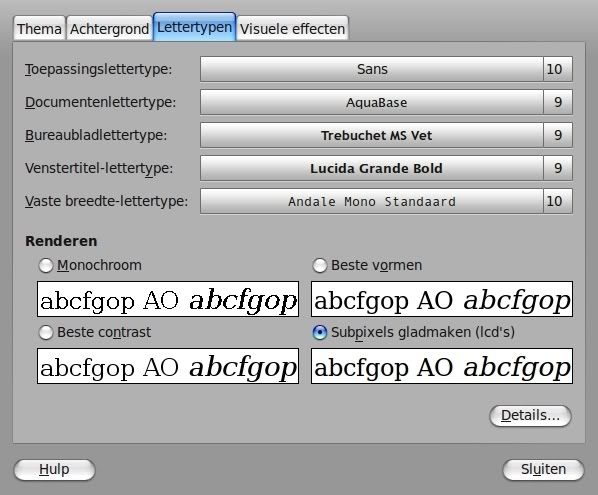 Nu je dit scherm toch open hebt kun je gelijk de fonts aanpassen. Ga naar de tap 'Lettertypen' en neem onderstaande instellen over: