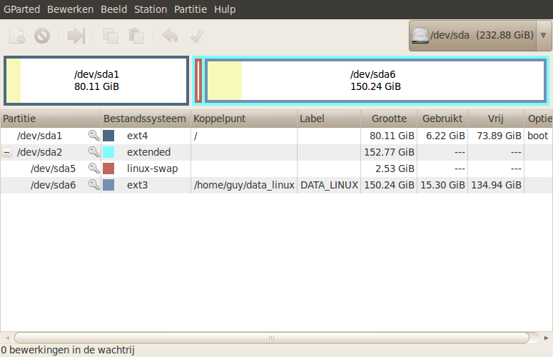 Verder heb ik geen gParted geïnstalleerd staan, dus ik ga je niet verder informeren zo uit het hoofd.