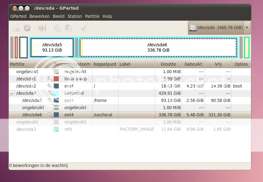 De laatste 2 commando's heb ik ook uitgevoerd zie hieronder. Het zegt mij niets. Ook 'mtab' en 'fstab' zegt mij niets.