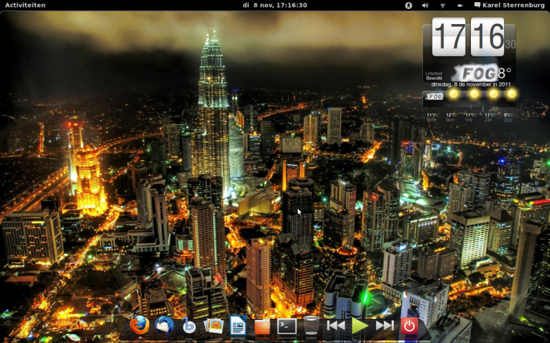 Hier is dan mijn bureaublad van Ubuntu 11.10 met gnome shell ! De HTC clock is een conky script.