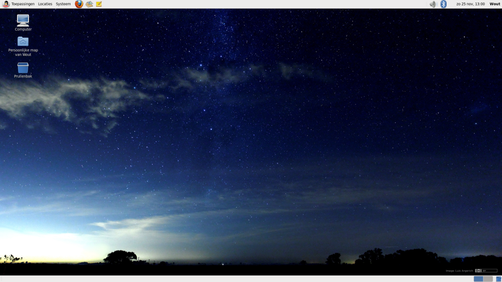 Enige wat ik had gedaan is Cairo-dock er in gezet, werkbalk boven gezet, bureaublad wisselaar erbij geplaatst, Thema Gnome 3 genomen en ook van het venster een ander thema genomen.