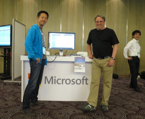 En hier zie je dezelfde booth met iemand van MS Japan en Linus Torvalds erbij: