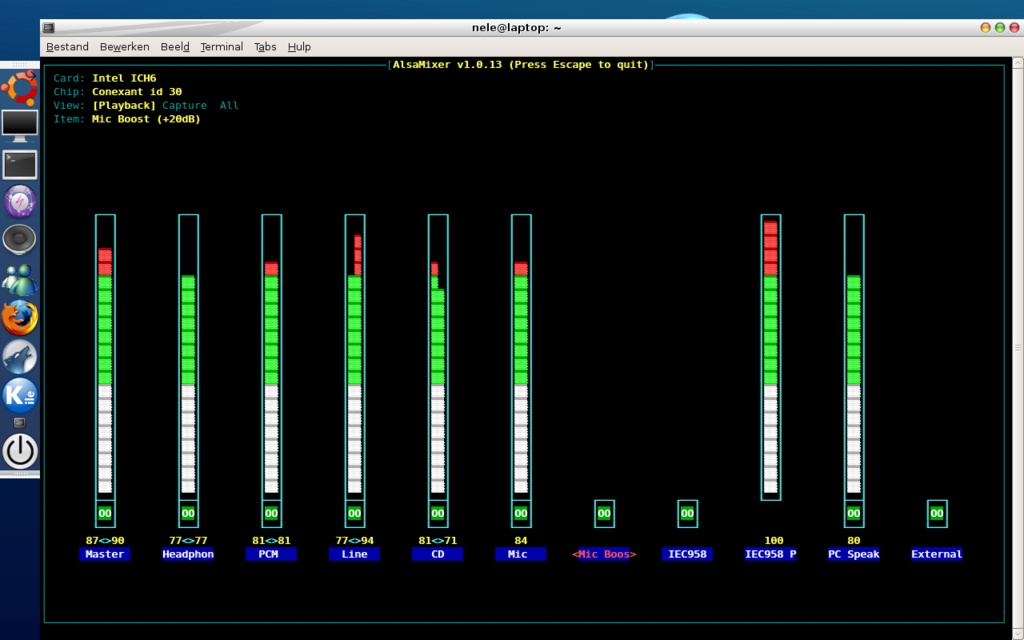Volgens die alsamixer screenshot staat PCM en Master toch ook open, dus het zou in principe moeten werken.
